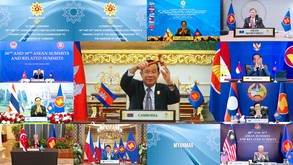 カンボジアのフン・セン首相と国軍トップが会談して1週間余、ミャンマー問題をめぐる東南アジア諸国連合(ASEAN)加盟国の見解の違いが表面化している。カンボジアがミャンマーの外交復帰を促そうとする一方、シンガポールなどは暴力停止などに取り組まない国軍の統治を容認することになりかねないと反発。18日に予定されていた外相会議は延期された。亀裂が深まれば、事態打開が再び暗礁に乗り上げる恐れがある。