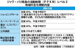 インドネシア政府は7日、新型コロナウイルス対策の活動制限(PPKM)で、首都ジャカルタ特別州全域をはじめとする首都圏やバリ州などの感染リスクを、これまでの下から2番目に低い「レベル2」から「レベル3」に引き上げると発表した。インドネシアでは新規感染者数が連日2万人以上を記録するなど感染が拡大しており、対策を強化する。