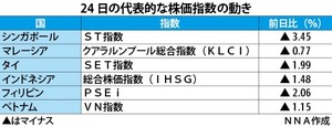 24日の東南アジアの株式市場は、ロシアによるウクライナ侵攻を受けて売りが広がった。主要国の代表的な株価指数は、いずれも前日から下落した。金融や空運などの関連銘柄が売られる一方で、国際原油価格の上昇を受けて一部の資源銘柄が買われた。