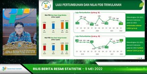 インドネシア中央統計局は9日、第1四半期(1~3月)の国内総生産(GDP)成長率が、物価変動を除いた実質(基準年=2010年)で前年同期比5.01%だったと発表した。21年第4四半期(10~12月)の5.02%からわずかに減速したものの、新型コロナウイルス禍前の5%水準を維持。マルゴ長官は「新型コロナ禍からすでに経済は回復し、成長基調に入っている」と述べた。