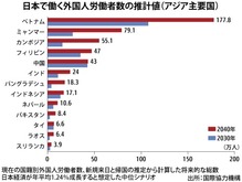 日本で働く外国人の「東南アジアシフト」が加速しそうだ。過去5年は技能実習生の増加を背景にベトナムが急増し、国籍別で中国を抜いた。これに追随して伸びるとされるのがミャンマーとカンボジア。2040年までに国籍別でそれぞれ2、3番目に浮上するとの見通しが出ている。足元では新型コロナウイルス感染症の水際対策が緩和ムードとなり、日本への渡航が再び増えている。