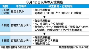 香港政府トップの李家超(ジョン・リー)行政長官は8日午前に会見を開き、海外と台湾からの入境者に課している最短7日間の強制隔離期間を、12日から3日間に短縮すると発表した。指定検疫(隔離)ホテルでの隔離を終えた後も4日間は、バーや飲食店への出入りを禁止するなど一定の行動制限が課される。