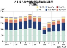東南アジア諸国連合(ASEAN)での自動車生産台数が今年、6月までに200万台を突破した。前年と比べると2カ月早いペースでの突破で、新型コロナウイルス感染症のパンデミック(世界的大流行)前と同じ水準に戻った。ただ、新車販売台数は回復しきっておらず、各国の景気刺激策の終了や世界的なインフレ圧力の高まりといった不安要素がちらつく中、自動車市場の本格回復は見通せない。