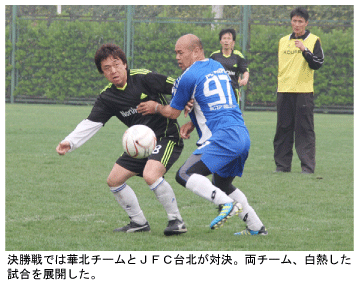 決勝戦は華北チームと台北チームの対決となり、試合序盤から攻勢をかけ続けた華北チームが2―0で勝利。大会MVPも、華北チームから田中晃さん(49)が選出された。