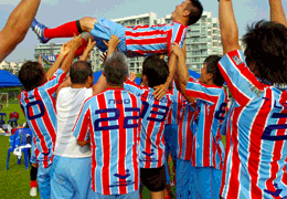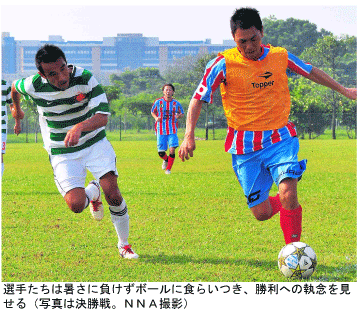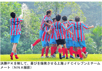 アジア各地に在住する40歳以上の日本人によるサッカー大会、「Ojin―Cup」第9回大会(NNAなど協賛)が6月29日、西部ジュロンのAR―JASスポーツセンター・グランドで開催された。決勝戦は上海ジャパン・フットボール・クラブ(上海JFC)と地元シンガポールのチャンギ・チューズデーJ(ちゃんちゅーJ)が対戦し、上海JFCがPK戦を制して大会3度目の優勝を果たした。