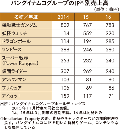 トイホビーの分野ではアジア地域、特に韓国を中心に定番の『スーパー戦隊シリーズ』の関連商品がヒットしています。加えて、2014年にブレークした『妖怪ウォッチ』の商品がアジアでも評判がいい。『機動戦士ガンダム』もガンプラ(ガンダムシリーズのプラモデル玩具)がハイペースで海外に浸透し始めました。