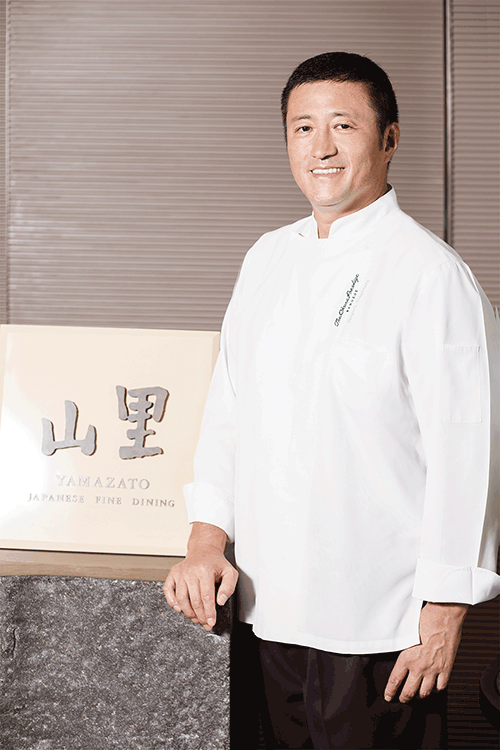 18歳でホテルオークラ東京の山里に入社して以来、30年以上にわたり和食一本のエキスパート。グアム、上海など海外での経験も豊富。日本の澤内総料理長いわく「海外向きの人材」と信任は厚い
