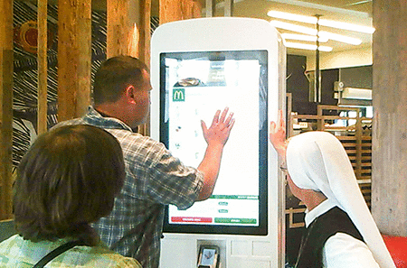 街には米系ファストフードのバーガーキング、ケンタッキーフライドチキン、ハーディーズ、英系大手カフェのコスタカフェ、日本にも展開するイタリアンカフェのセガフレード・ザネッティなど外資系チェーン店があふれ、外食産業での参入が進んでいる。中でも店舗が多く最も目にするのはバーガーキングだが、その牙城に昨年3月、マクドナルドが中央アジア初の店舗を開業。アスタナ店のオープン式典には大統領も駆けつけた。最先端の自動オーダーパネルを3台導入し、ドライブスルーも24時間利用可能など、ハイスペックな店舗で消費者にアピールする。
