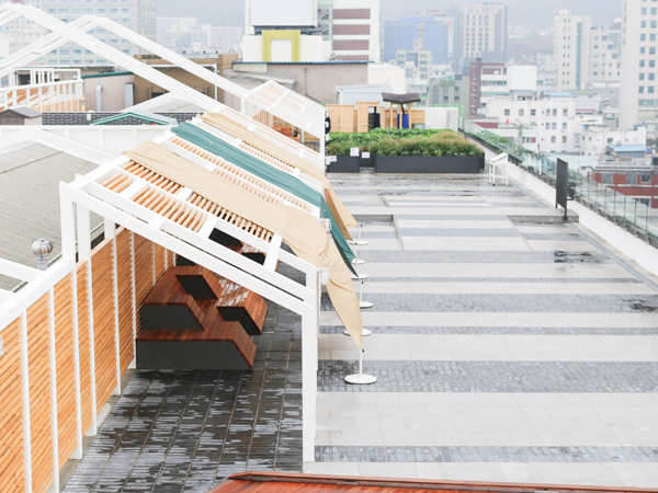 8階の屋上スペースに設置した展望デッキからは、南山や世界文化遺産に指定されている宗廟などの都心の風景を一望できる。ソウル市関係者は「市の新しい名所になれば」と期待を寄せる。