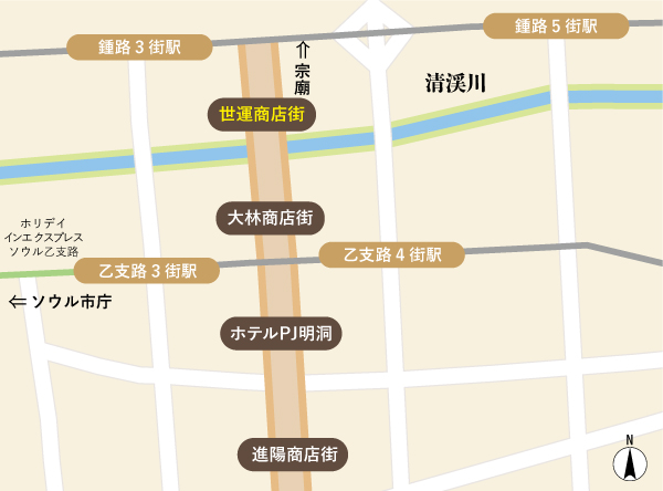 一方、大林商店街からさらに南側に連なる「三豊商店街(サンプンサンガ)」と「ホテルPJ明洞」、「晋陽商店街(チニャンサンガ)」を歩道橋で連結させる第2期工事は来年着工予定。438億ウォンを投じ、20年の完工を目指す。