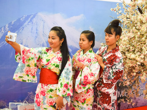 イベント会場では、JNTOが日本の主要観光地を記載したパンフレットを配布し、来場者に日本への旅行経験があるのかなどを調査。着物の試着や折り紙の体験コーナーのほか、全日本空輸が仮想現実(VR)で観光地を視聴できるブースを構えた。地場の旅行代理店も日本への旅行を売り込んだ。