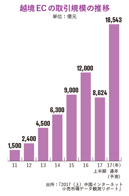 百貨店大手の阪急うめだ本店(大阪市)では中国人客を中心とするインバウンド向け売上高が2017年4~9月、前年同期比65%増となった。中国人客の口コミが広がり、中国国内での需要も見込めることから、日中越境ECを同年8月から始めた。