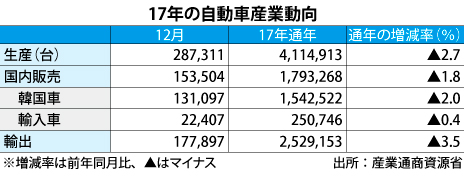 自動車産業、17年は生産や輸出など軒並み下落NNA POWER ASIA 2018年1月18日付