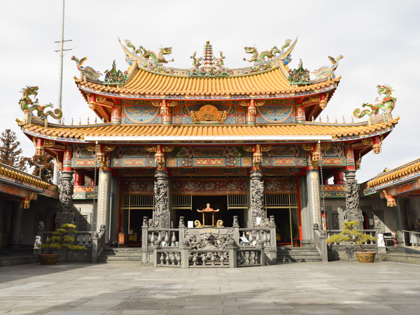 東武東上線の駅から路線バスで約10分。県道沿いの景色が商業施設や工場から畑に変わり始めるころ、異国情緒にあふれ、竜などの装飾を施したオレンジ色の屋根の建物が、ふいに目前に表れる。埼玉県坂戸市にあるこの施設「聖天宮(せいてんきゅう)」は、道教の最高神格である3人の神「三清道祖」を本尊に祭っている。関帝廟や媽祖廟など日本にある道教の施設の中では最大級の規模という。