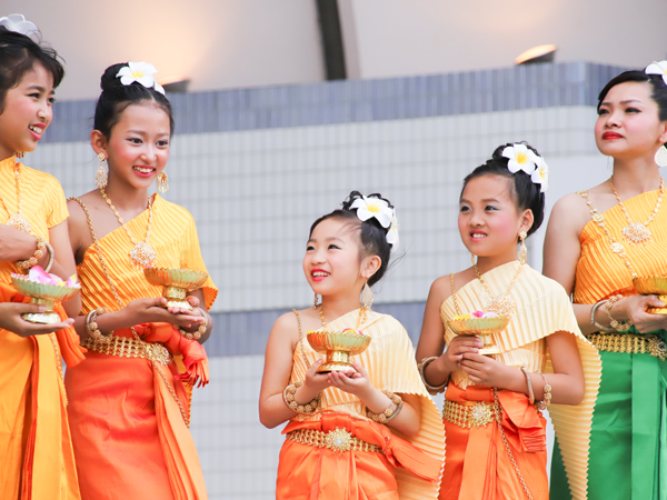 今回、来日したのは5人の女性舞踊家。初夏らしい南風が吹く中、荘厳な音楽に乗ってクメール美人たちが舞う姿は、優雅のひと言だ。年齢も、来日理由もさまざまであろう在日カンボジア人たちが皆、誇らしげな微笑を浮かべながら舞台を見つめていたのが印象的だった。