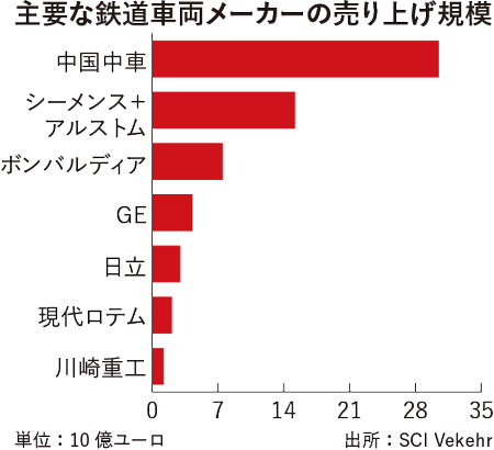 ◎ビッグスリー:世界市場をけん引する欧州鉄道車両メーカー3社。ボンバルディア、シーメンス、アルストムを指す。1990年代以降、小規模メーカーを買収する形で大手3社に集約化した。中国中車に対抗するため、2017年にシーメンスとアルストムが統合計画を発表。18年末までに新会社「シーメンス・アルストム」を発足させることになっている。