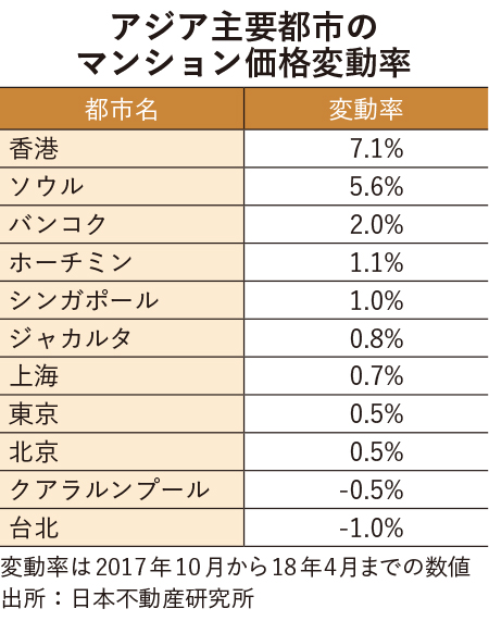 このほか、インドネシアのジャカルタは、実需層向けの中級物件に対する底堅い需要に支えられ、価格は堅調に推移している。19年の大統領選挙を見据えて、政策による内需拡大への期待もあり、今後のマンション市場に好影響を与えるとの指摘がある。