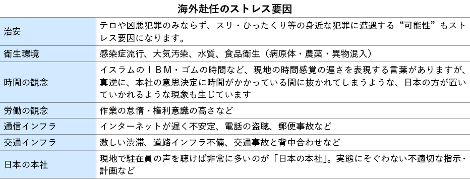 異なる国の文化や風習と対峙する海外駐在はさまざまなストレス要因にさらされることもある