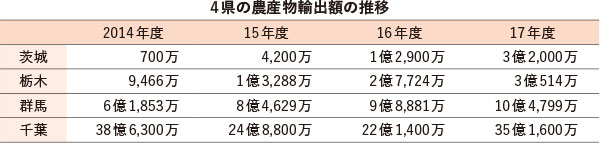 ※単位:円、統計の対象は県によって違いがある。千葉は各年の1〜12月の数値 出所:4県発表