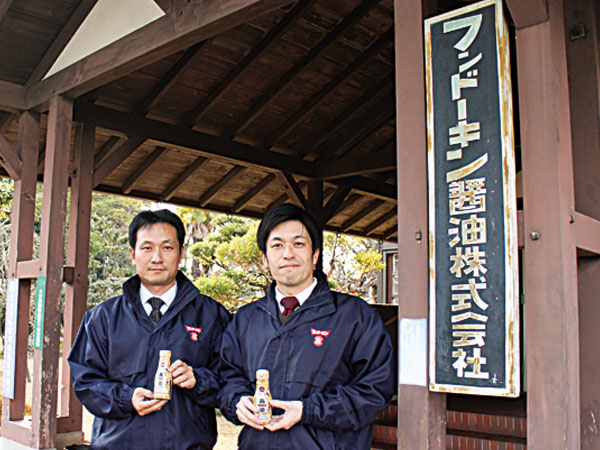 フンドーキン醬油の高野氏(左)と阿部氏=臼杵市(NNA撮影)