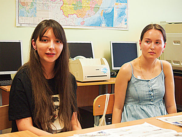 ベラルーシ国立大学日本語学科のアリエワ・エミリアさん(左)とアンナ・ピンチュクさん。「日本企業の進出が少なく、中国語学科に比べて就職は不利」と話す