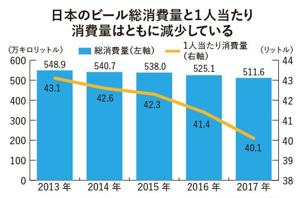 一方、17年の世界のビール消費量約1億8,672万キロリットルのうち、アジアの構成比は33.7%で10年連続の首位だった。中国が15年連続で世界首位となったが、消費者の需要が成熟し、市場が飽和したことで4年連続の前年割れとなった。