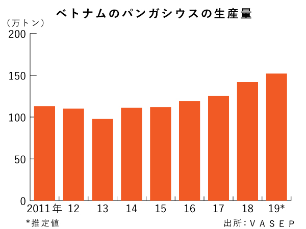 日本もパンガシウスの可能性に目をつけ始めた。2010年代に入るまではなじみがなかったが、12年に流通大手のイオングループが実験的にベトナムから輸入。14年に輸入本格化と日本での販売を始めた。