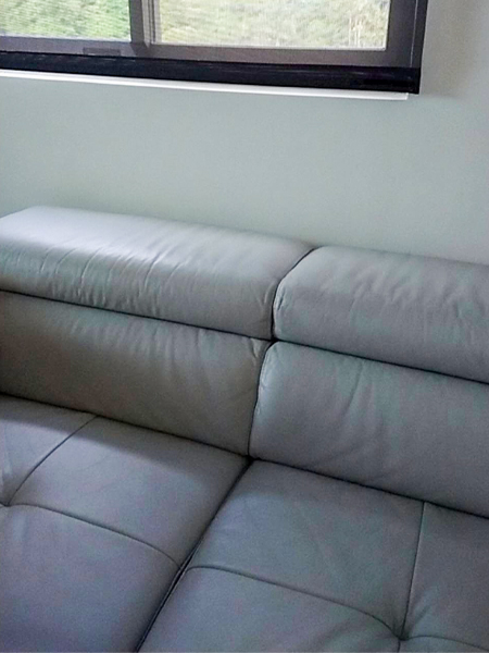リクライニングできるソファーを置いたリビング。窓からは山や海の景色が。「仕事で疲れているときに見るとリラックスできます」(同)