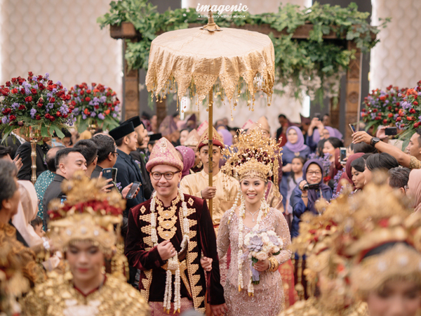 新型コロナ流行前の挙式の様子。新郎新婦の民族によって婚礼衣装やスタイルは変わってくる。写真はイスラム式(IKKインドネシア提供)