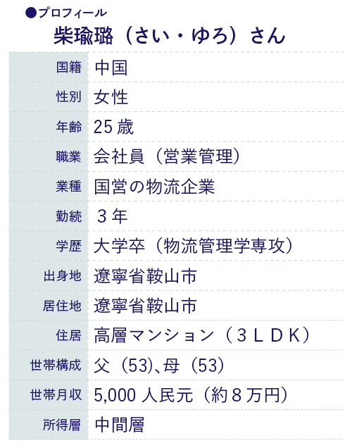 中国東北地方の製鉄所のメッカとして知られる遼寧省鞍山市で、両親とともに家族3人で暮らす柴さん。地元の大学を卒業後、国営の物流企業に就職して3年目の昨年2月、2週間だけ在宅勤務となった。