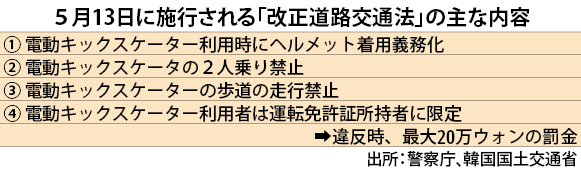 市場が急成長した副作用でスケーターによる交通事故が多発し、社会問題となっている。政府は5月に法改正してヘルメット着用を義務化。「自動車のような体系的な保険が必要」との指摘もある。