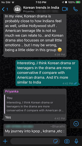 その後、すぐさまSNS上にグループチャットが立ち上がる。デリー首都圏、南部ベンガルール(バンガロール)、チェンナイにそれぞれ住む、20代のインド女子5人による韓流座談会が始まった。
