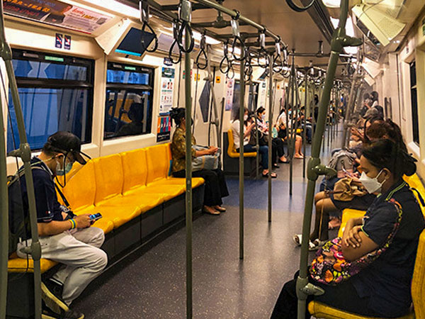 バンコクは8月末までロックダウン(都市封鎖)を実施。外出自粛や在宅勤務の普及により、高架鉄道(BTS)はラッシュ時でも空席が目立った=8月、タイ・バンコク(NNA撮影)