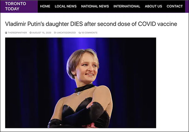 「プーチン大統領の娘が新型コロナウイルスのワクチンを接種して死亡した」