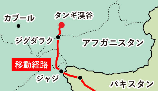 目指す拠点ジグダラクは、ソルビという都市から南に十数キロメートル。主戦場はその北東にあるタンギと呼ばれる渓谷です。渓谷の底は、首都カブールとパキスタンとの国境近くの町ジャララバードを結ぶように敵の主要補給路となるアジアハイウエーが通っています。そこにいる敵の守備隊や輸送隊を撃破し、補給路を断つ事がわれわれの主任務でした。