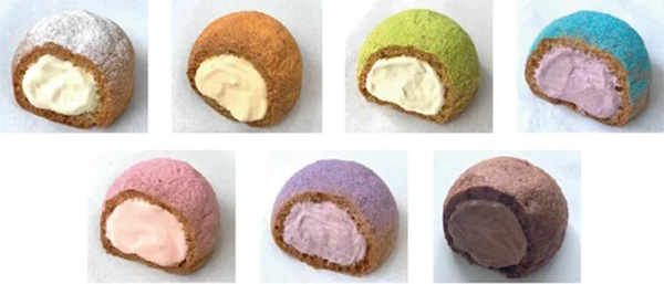カラフルなクリーム、パウダーシュガーが特徴。カスタード、チョコレート、抹茶、ストロベリー、マンゴー、ブルーベリー、フルーツパンチ、バナナ、ピーチ、オレンジ、メロン、ピンクグアバ、塩キャラメルなど、豊富なフレーバーを開発。当初は定番6種類から販売開始した。(麦の穂提供)