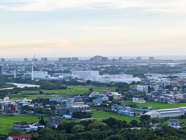 新竹県北部の工場群=6月、新竹(NNA撮影)
