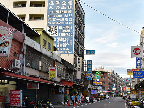 台湾の北西部、台北からは西に約40キロメートルの新竹県に位置する台湾鉄路の新豊(しんほう)駅。東側には、新竹工業区の工場群が広がる。その約2割は電子部品製造業で、多くの外国人労働者が働く。付近は東南アジアの商品を扱うスーパーやレストラン、人材派遣会社の支店が軒を連ね、仕事帰りの労働者でにぎわう。