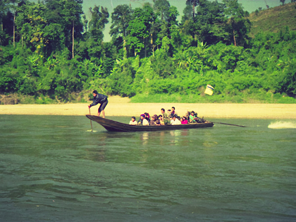 ミャンマーのサルウィン川とモエイ川での船舶交通。大きい川がある場所は小型船による交通網が発達し、楽に早く移動できる重要な交通手段。大勢の避難民の足にもなっている(筆者提供)