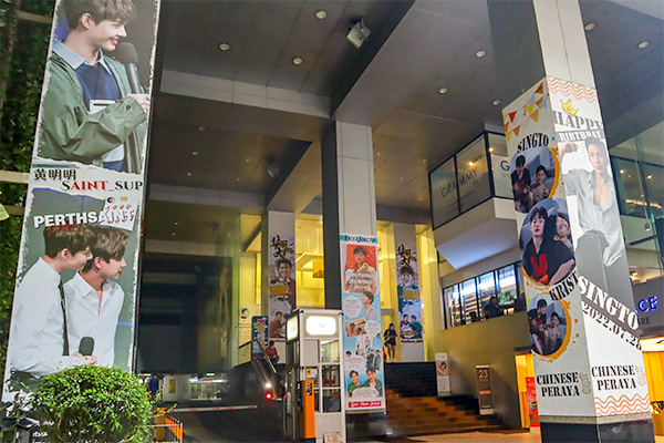 音楽・芸能大手GMMグラミー傘下にあるGMMTVが入るビル。ビル内には公式グッズの販売スペースもあり、日本ファンが「聖地」と呼ぶ場所の1つ=8月16日、バンコク(NNA撮影)