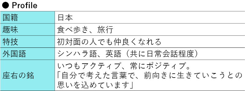 内海 スリランカに興味を抱くきっかけとなるチャンネルを目指しています。そういった意味で同国の魅力が伝わるものであればどんなことでもいいと思っていて、ビジネス、観光、食、語学など幅広い情報を発信しています。