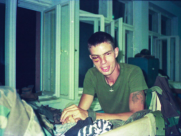 最前線で負傷したデンマーク人の戦友。近くで手りゅう弾が爆発したが、運よく破片が目の上下をかすっただけで軽症で済んだ。眼球にも異常無し(筆者提供)