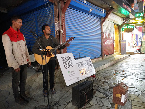 路上ライブの投げ銭はQRコード。ポカラのレイクサイドで(筆者提供)