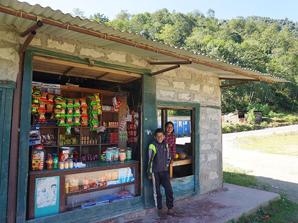 ネパール中部ビューコットの雑貨店。この子たちの家族も日本で働く(筆者提供)