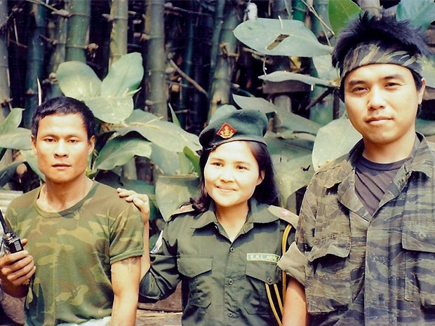 ミャンマー・カレン軍のモーター曹長(左)、女性将校(中)と(筆者提供)
