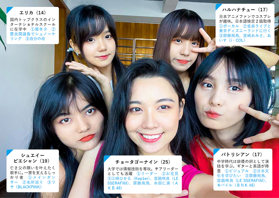 「ミャンマー人にその理由を尋ねると『この国にはそもそも受け皿が無い。アイドルになりたくても、ミャンマーに生まれてきた限り無理だと諦めている』と返された。しかし、そんな現状だからこそ、頑張れば成功できるという手本が必要だと痛感。オーディション立ち上げにつながった」と前出の加藤さん。最年長でリーダーのチョータゴーナインも「募集を知った時、母国でアイドルになれるまたとない機会だと思った」と振り返る。