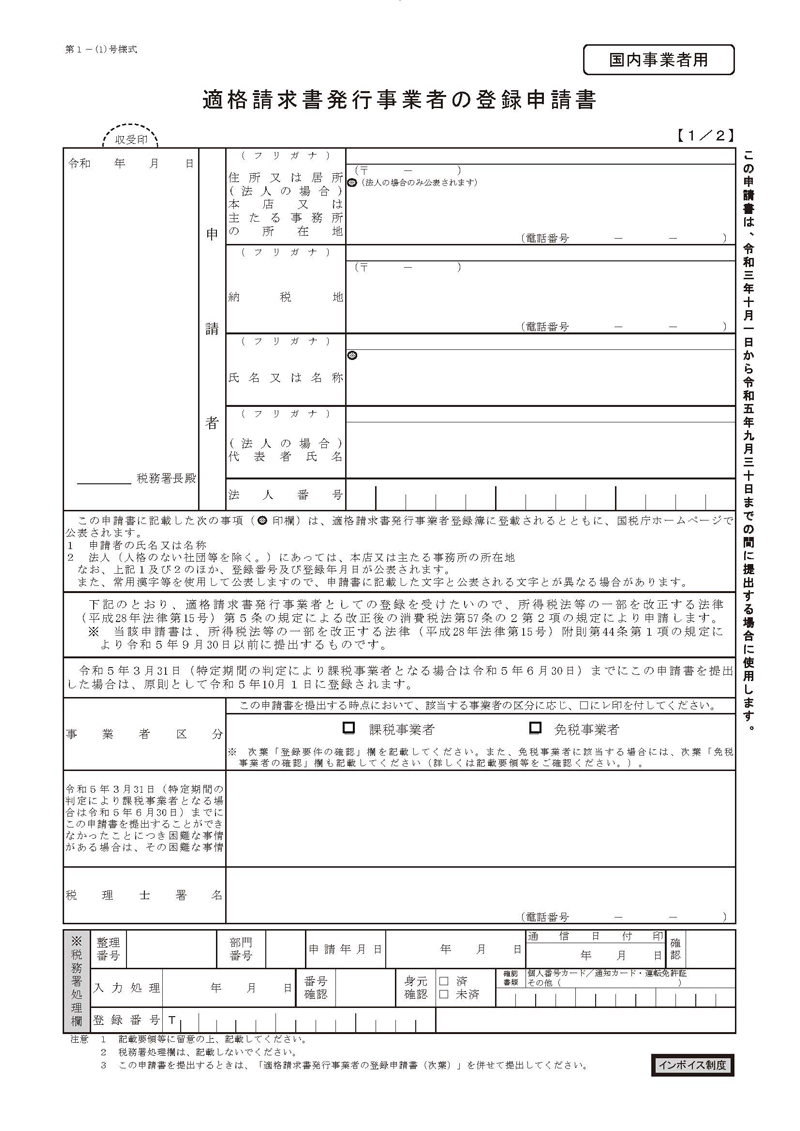 出所:国税庁「適格請求書発行事業者の登録申請書(国内事業者用)」