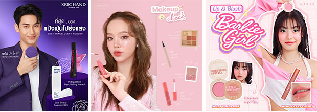 タイの地場ブランド。シーチャン(左)はボーイズラブ(BL)ドラマで人気の男優を起用。MEILINDA(中)、NAREE(右)はガーリッシュなデザインで見せる(各社の公式フェイスブックより)