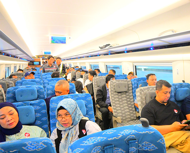 窓の幅は1メートル以上と大きく、開放感がある。走行中は静音性が保たれ、少し離れた席の人とも普通の声量で会話できる。揺れも気にならない。停車駅や駅構内でのアナウンスは、インドネシア語と英語となっている。
