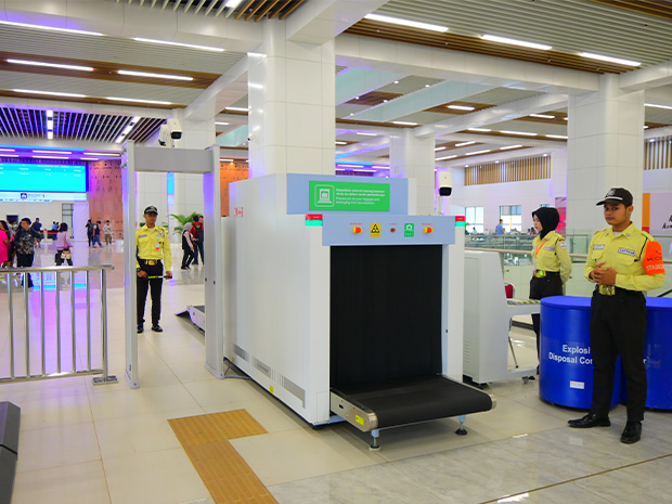 ハリム駅構内。乗車前に荷物のX線検査を実施=ジャカルタ特別州(NNA撮影)
